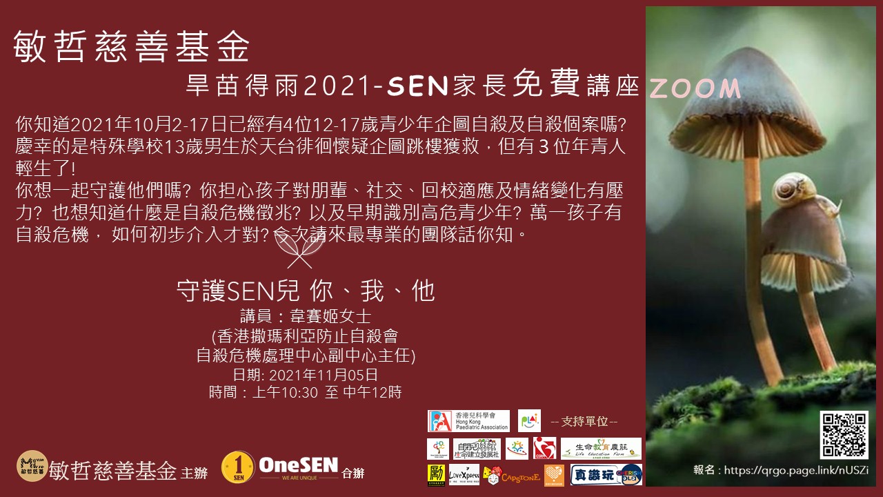 旱苗得雨-SEN家長線上講座 (守護SEN兒 你、我、他)