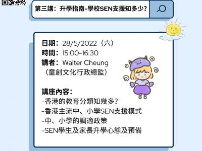 網上講座 - 「第三講」升學指南:學校SEN支援知多少 ?