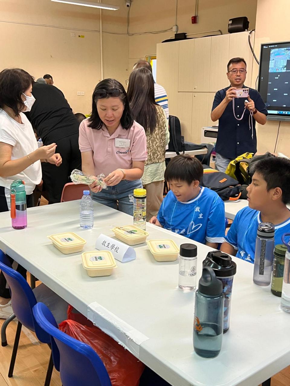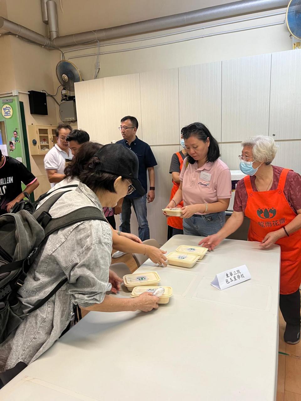 擔任活動義工,為參賽同學及老師派發素飯盒。