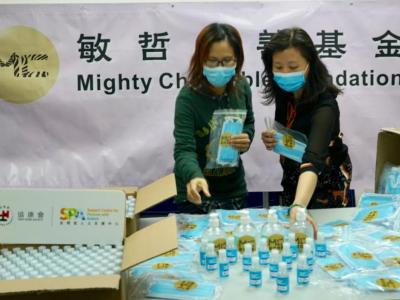 敏哲慈善捐贈口罩及酒精搓手液到協康...