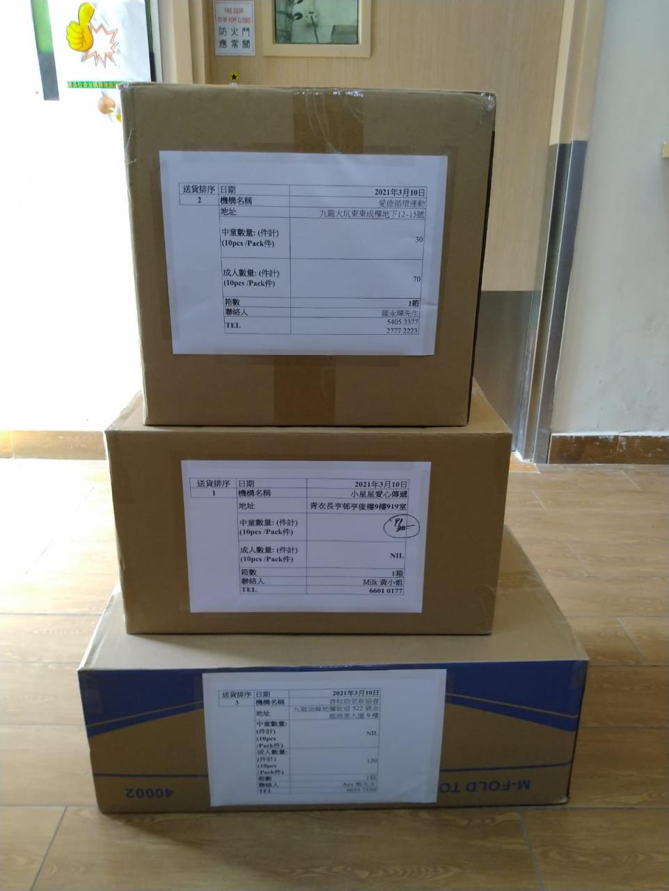 感謝各合作機構包裝及分派口罩: 扶康會柔莊之家, 香港撒瑪利亞防止自殺會, 善牧助更生協會, 小星星愛心傳遞, 同心圓, 樂耕園, 愛德循環運動, 扶康會山景成人訓練中心