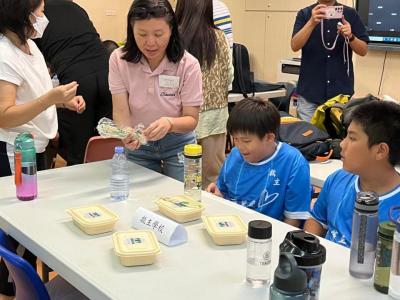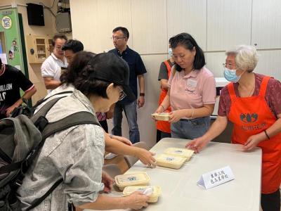 擔任活動義工,為參賽同學及老師派發素飯盒。